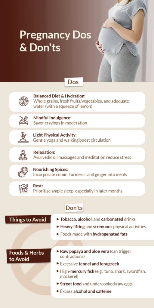 With this basic overview you might get an idea of the dos and don’ts of pregnancy that will help you through your pregnancy journey the ayurvedic way. Consult with your doctor before intake of medication or any doubts and clarifications regarding pregnancy. This will give you a clear idea and help in avoiding complications.Â