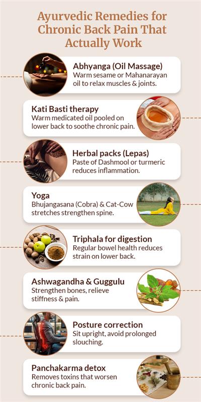 Chronic back pain is a common ailment that can severely impact your quality of life, making even simple movements a struggle. In Ayurveda, chronic pain is often attributed to an aggravated Vata dosha, which governs movement and the nervous system. When Vata is out of balance, it can lead to dryness, degeneration, and stiffness in the joints and tissues, resulting in persistent pain.