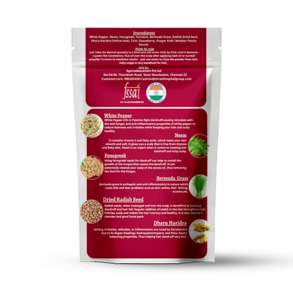 Known in Ayurveda for its cooling, anti-inflammatory, and antimicrobial effects, it soothes scalp irritation and is traditionally used to help treat dandruff easyayurveda.comayurhelp.comiajps.com.
