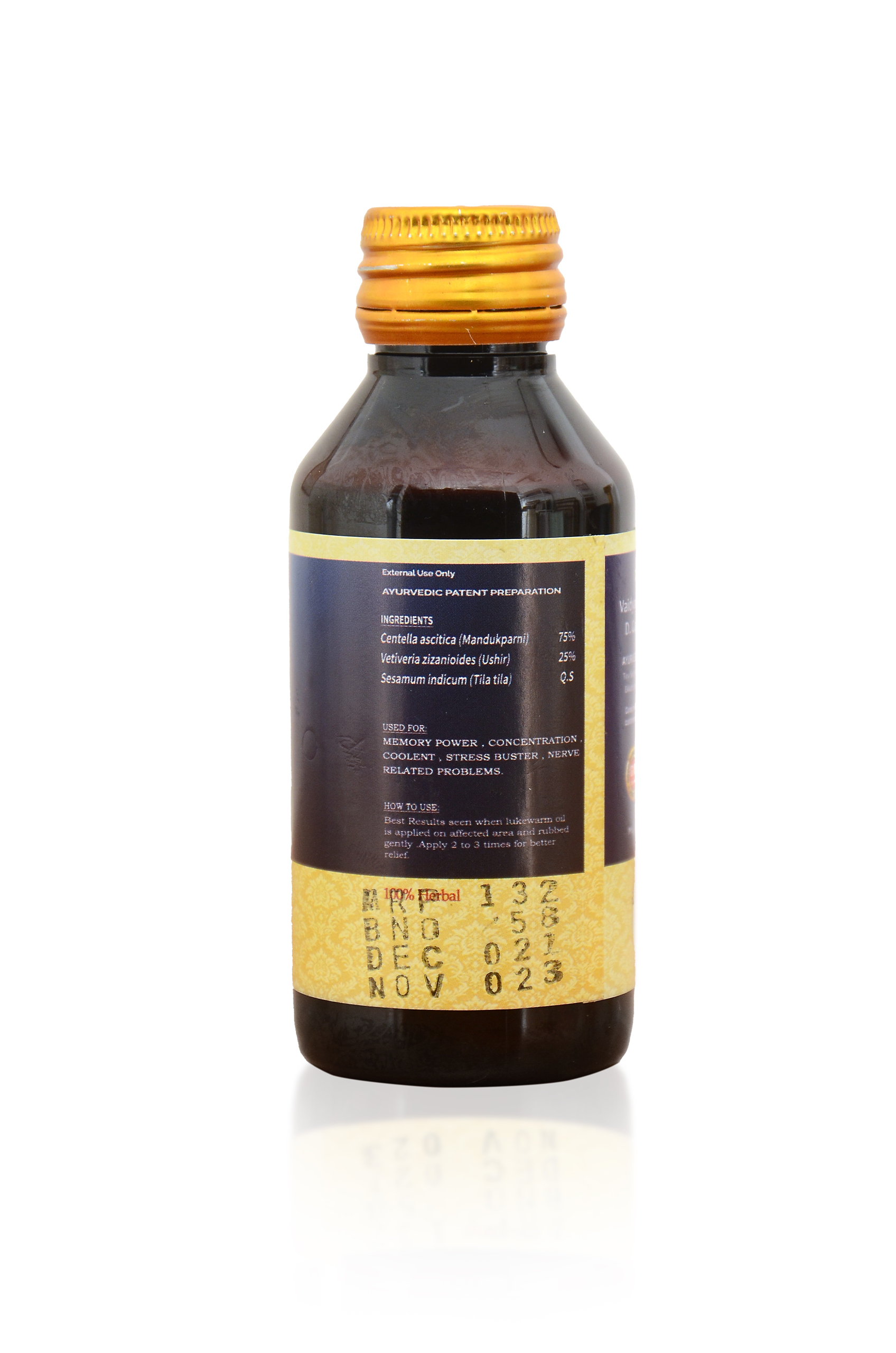 A sacred Ayurvedic oil that gently nurtures the mind, reduces anxiety, and restores restful sleep. Brahmi Thailam blends Brahmi and cooling comforts in a soothing sesame‑oil base.