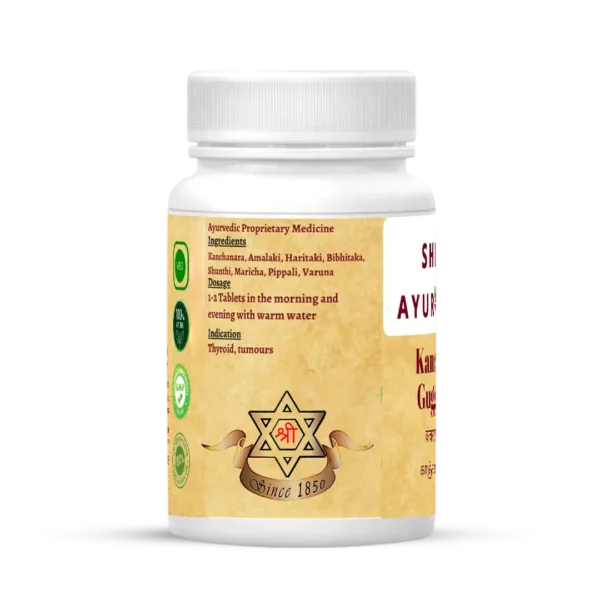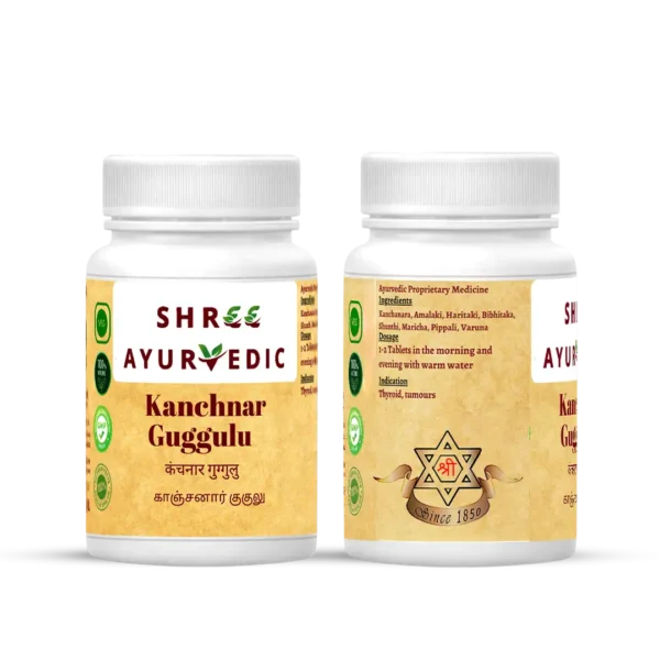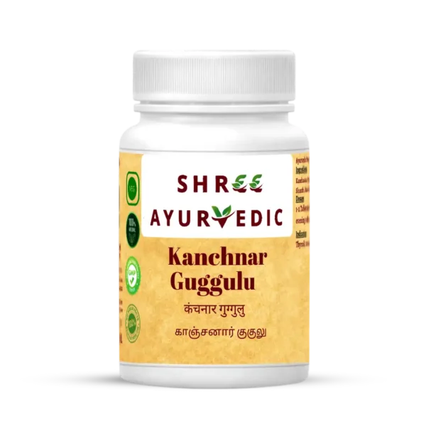A potent polyherbal Ayurvedic formulation combining Guggulu resin and Kanchanara bark, Kanchanar Guggulu is prized for its Kapha-reducing and detoxifying properties. It’s traditionally employed for resolving cystic swellings, regulating thyroid function, and promoting lymphatic drainage.
