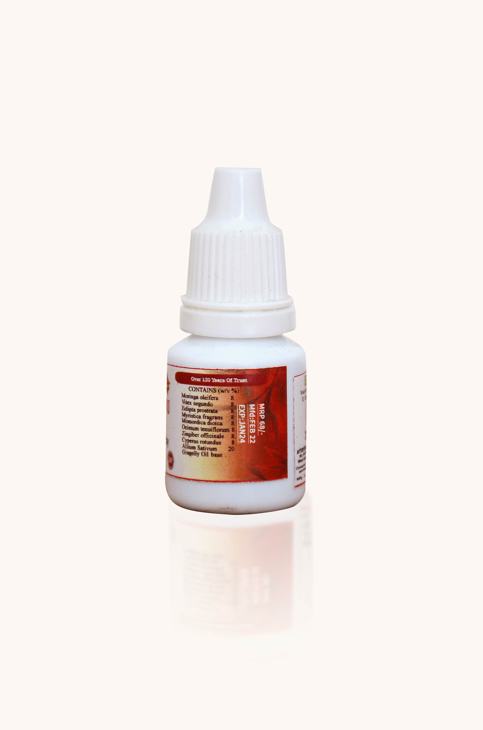 An Ayurvedic earcare solution expertly formulated to balance ear health and relieve infections, itching, and hearing discomfort; safe for both children and adults.