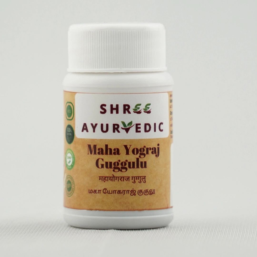 A potent and meticulously balanced Ayurvedic formula, Mahayograj Guggulu combines purified guggul resin with a blend of herbs and mineral bhasmas to deeply support joints, muscles, and neurological health while enhancing circulation and detoxification—especially in chronic Vata-dominated disorders.