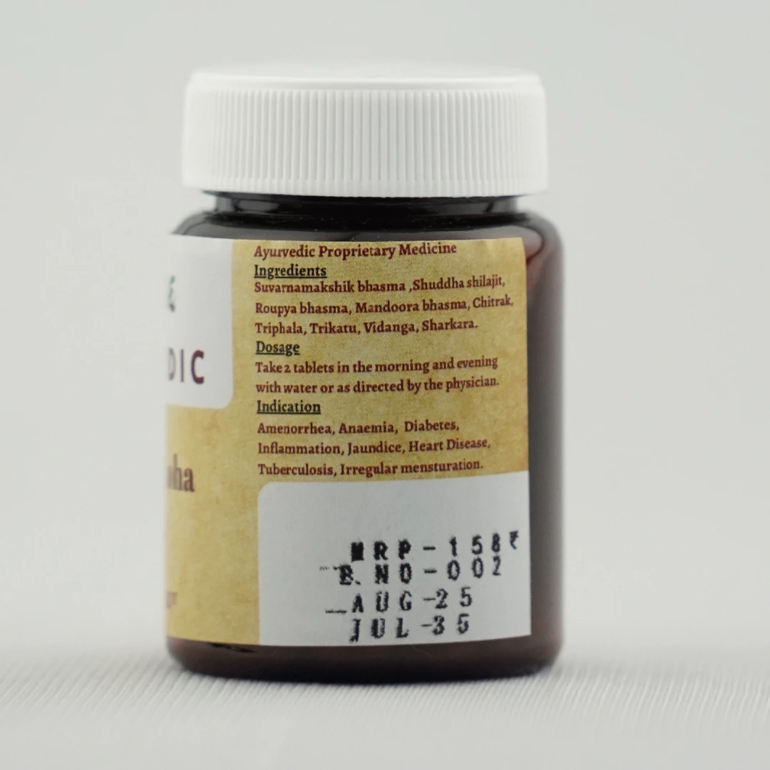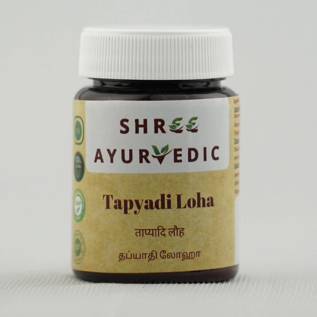 Thapyadi Lauh is a traditional Ayurvedic iron-rich tablet combining Lauh and Mandur bhasmas with classic herbs like Triphala and Trikatu to support liver health, anemia management, metabolic balance, and digestion.