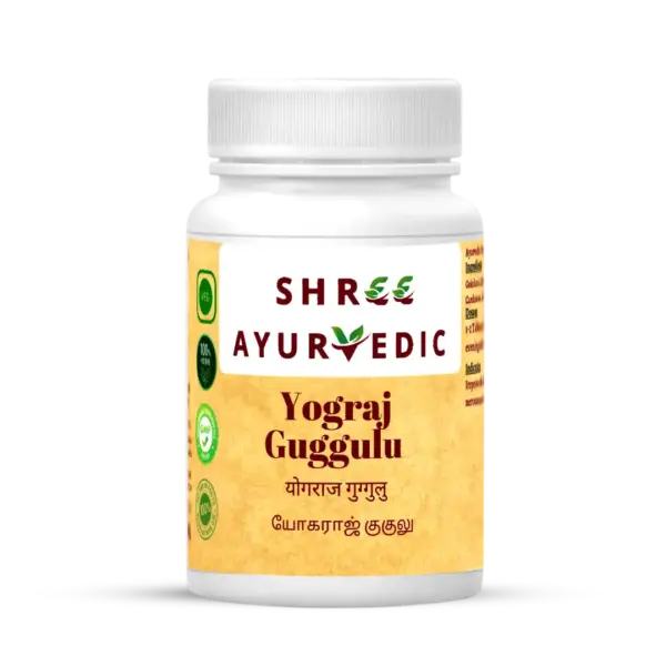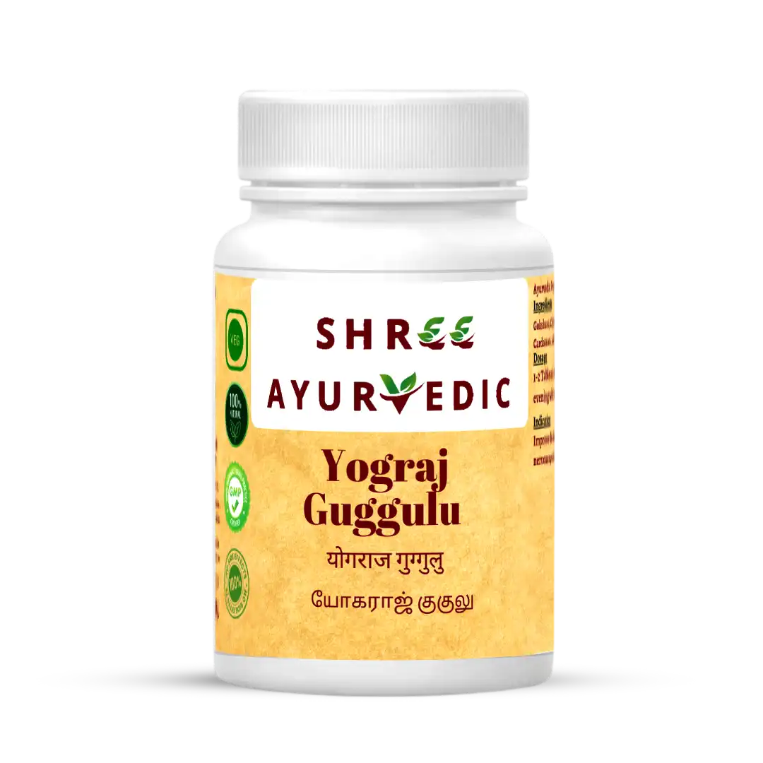 Yograj Guggulu is a revered Ayurvedic formula combining Guggulu resin with detoxifying herbs like Triphala, Chitraka, and Vidanga. This potent blend is traditionally used to pacify Vata imbalance, relieve joint and neural discomfort, and support metabolism and overall vitality.